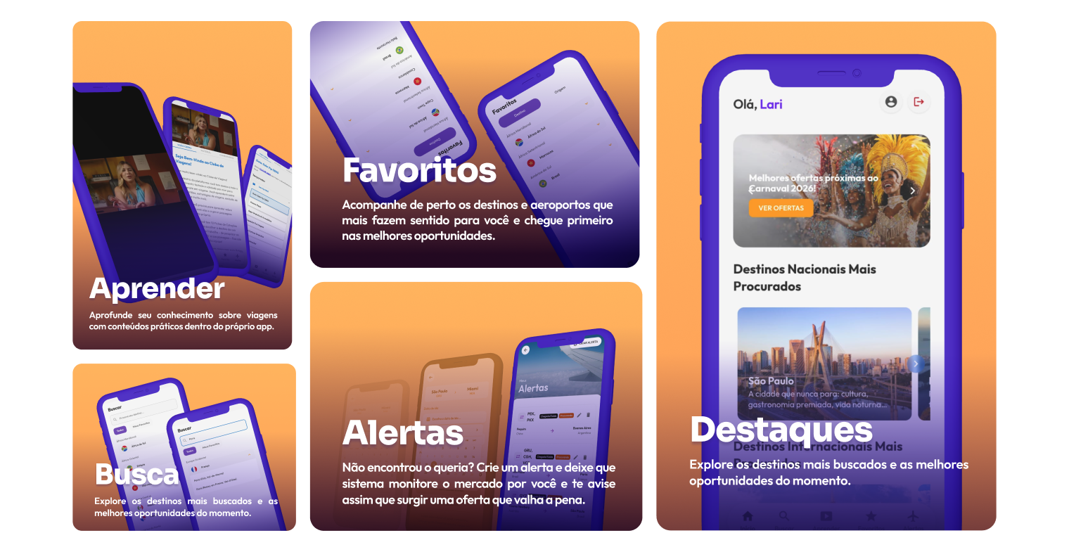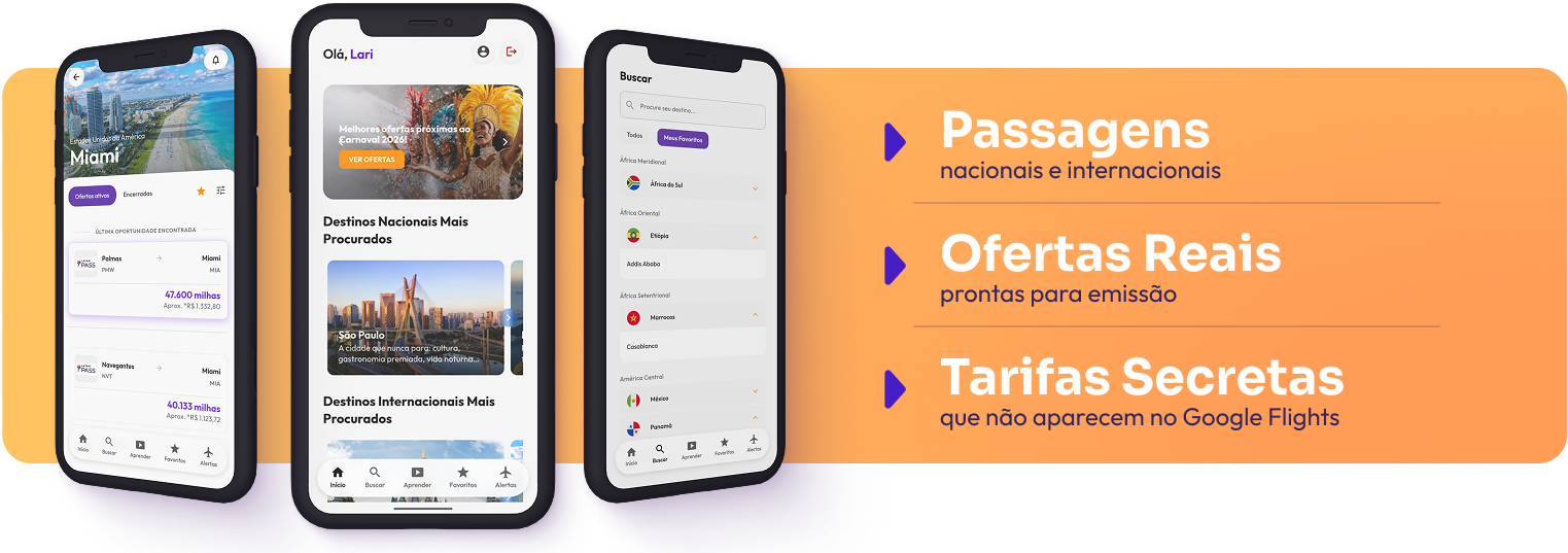 As melhores oportunidades de passagens, em poucos cliques e sem complicação.